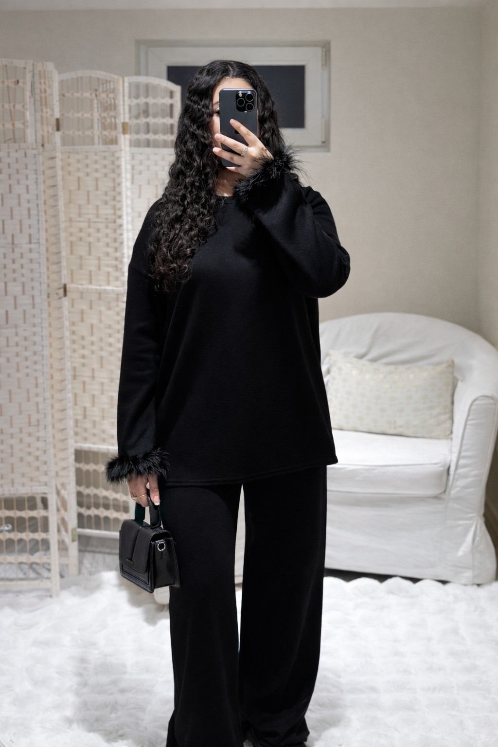 Ensemble raffiné aux manches en fourrure. Confectionné en matières premium, cette pièce combine confort et sophistication pour les femmes en quête d'élégance distinctive. Coupe soignée qui valorise la morphologie.